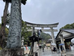 子供たちの学業の件をお願いし、学業のお守りを二つ買って、参道への道沿いに続く土産屋屋や飲食店にはわき目もふらず、滞在時間10分ほどで次に向かいました。