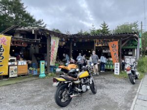 まず、帰りに寄ると売り切れている可能性がある 河口湖のお気に入りのお店で〝フルーツコーン〝と〝キノコ類〟を買い、山中湖経由で 富士山ニ合目で行われていた 「富士絶盤ミーティング」(絶盤車バイクの集まり) に顔を出して来ました。 (山物屋で、ジャマイカ人の彼が無くしたショルダーバッグを見つけてあげました😊)