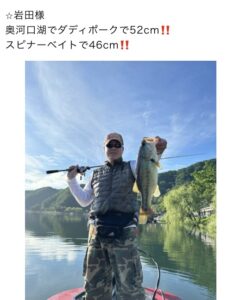私が 52cm 48.5cm 40cm 34cmの四本。 ナオジが 45cm 45cm 小バスの三本と、まあまあの釣果でした。
