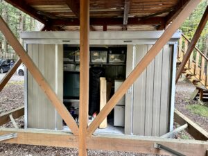 4、5年前に買った かなり大きなイナバの物置は、軒下なのでまだ全然綺麗ですし(結構な金額でした💧)何よりも2台のポケバイには思い入れがあったのですが、置くところもなければ 売るのも面倒くさいので仕方がありません。