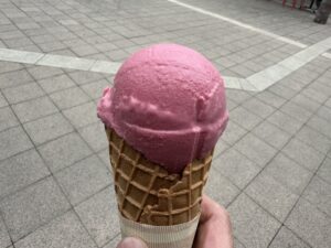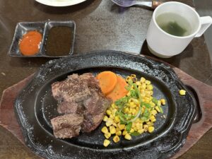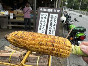 鳴沢村でフルーツコーンを食べた後 イベント会場に入った仲間と再合流して、朝霧高原でアイスクリームを食べ、西湖と河口湖の湖畔を疾走し、山中湖でステーキを食べて帰って来ました😊