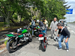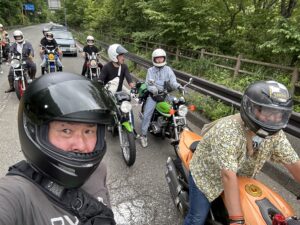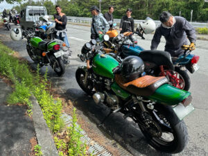 私の「カワサキZ1」は完全なる〝レーサー仕様〟なので、この人たちとは完全に一線を画しているのですが、一切バイクに興味のない人から見たら 区別はつかないのかもしれません。