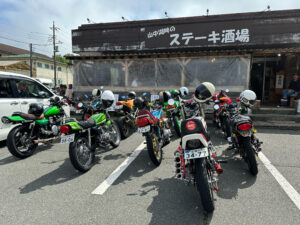 昨日は、三鷹 武蔵境野 調布の仲間のバイク7台+車1台で、ツーリングがてら 河口湖で行われた〝旧車イベント〟に参加して来ました。 本来はバイク13台が集まる予定だったのですが、集合時間の時点でまだ雨が降っていたため、半減してしまいました。 コロナ禍とYouTubeの影響からの 近年の旧車ブームに乗って(私は20年ほど前から旧車に乗っています)関東のみならず東北や関西 山陰 山陽や四国などからも、総勢4,000台を超える旧車が参加するので、このイベントが開催される富士河口湖町は この日はまさに〝旧車だらけ〟となります。 本来であれば私は 徒党を組んで何かをしたり、このような〝自慢会〟のようなイベントがあまり好きではありません。 必ず 無駄に調子に乗っている輩がいるので、その人たちと一緒だと思われたくないからなのですが、この日本一の旧車イベントだけは 4年連続で参加しています。 〝旧車の改造〟にはいくつかのパターンがあるのですが、一番メジャーで人気があるのが〝暴走族風の改造〟となります。 私の「カワサキZ1」は完全なる〝レーサー仕様〟なので、この人たちとは完全に一線を画しているのですが、一切バイクに興味のない人から見たら 区別はつかないのかもしれません。 元々は40年ほど前、富士スピードウェイで開催されていた 「富士グランチャンピオンレース」 (通称グラチャン) を観に行く人たちが 自分たちの車両を暴走族風に改造したのが始まりで、その後それが「初日の出暴走」へと繋がるのですが、このような〝にわか暴走族〟にとって河口湖は 当時は〝聖地〟となっていました。 その頃〝現役〟だった人たちも スッカリしょぼくれたオヤジになっているのですが、どうもこの 〝河口湖に暴走族風な行為をしに行く〟 という快感が忘れられない人たちが多いらしく、このイベントに集まっている人たちのほとんどが40代50代60代の いい歳をしたオヤジです。 (私もオヤジですが💧) このように いい歳をしたオッサンが無駄にイキっているのを見ると、こちらが恥ずかしくて仕方がなくなるのですが (これは「お祭り」(御神輿)でも感じる事が多々あります) 単純に〝旧車を愛している〟ような人たちも少なくありませんし、これだけ多くの旧車を〝生で見る〟機会は他にありません。 よって 〝イベント会場のところまでは行き、会場の中には入らず、会場に入った仲間を 近くでトウモロコシを食べながら待つ〟 という事にしました😅 鳴沢村でフルーツコーンを食べた後 イベント会場に入った仲間と再合流して、朝霧高原でアイスクリームを食べ、西湖と河口湖の湖畔を疾走し、山中湖でステーキを食べて帰って来ました😊