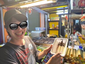 ホテルの前のグエンフエ通りの屋台で、長男坊が面白半分でサソリを買って食べたのですが、サソリを買おうとしていた時に お客さんのベトナム人のおばちゃんが、一生懸命