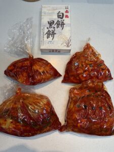 しかし 本当にそこのキムチが一番美味しいのか 今一度確認してみたくなり、桃谷で一番評判のいい「山田商店」のキムチと、鶴橋で一番評判のいい「豊田商店」のキムチを、それぞれの店で〝白菜キムチ1kg・大根キムチ500g〟買ってみました。