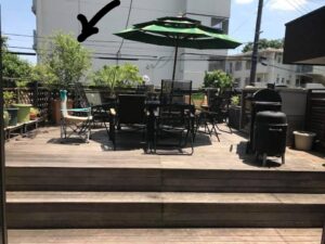 昨夜 家のウッドデッキで、買い替えたバーベキューグリルの組み立てをしていて、フッと奥のブルーベリーの木に目を向けると、木の枝に 何やら〝白い塊〟がついていました。