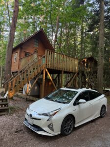 河口湖では まずフルーツコーンをお土産に買って、私が建てた 元〝三番目の別宅〟であった「ツリーハウス」