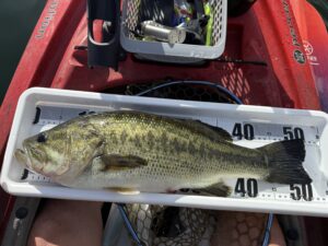 仕方がないので〝朝ニ〟で入る予定だったポイントまでカヤックを漕いて行き、1時間半ほど粘って52cmのバスを釣る事ができたのですが、記念すべき〝初めてカヤックで釣ったバス〟が50upだった事と、懸念していた〝カヤックでのビッグバスとのファイト〟も危なげなくこなせたので、その時点である程度満足してしまいました。