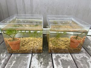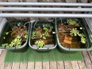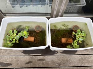 を導入し、水草(水生植物)も ヒメホテイアオイ、オオサンショウモ、アオウキクサ、アマゾンフロッグピット、南米ウィローモス、オオトクサ、ミズトクサ、ヒメトクサ、ナガバオモダカ、ガガブタ、黄金セキショウ、斑入り有栖川セキショウ、姫睡蓮(ヘルボラ)、マツモ、アナカリスと、これでもかと導入しました。