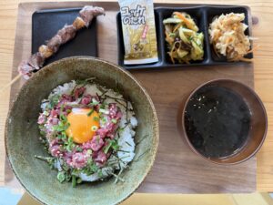 私は「馬肉のユッケ丼」と「馬刺しのあぶり串」を食べ、ケンタロウの奥さんが「馬肉のネギトロ丼」を味見をさせてくれたのですが、そのどれもがあまりにも美味しくて