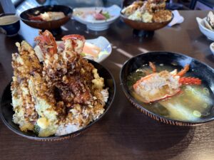 そのご依頼者様にも 来訪をとても喜んでいただき、お刺身も ハマグリも イワシも 伊勢海老の味噌汁もとても美味しかったのですが、初めて食べた〝伊勢海老天丼〟が 本当に絶品でした。