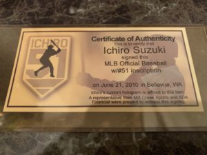 8、9年前に正規ルートで入手した 「世界51個限定 10年連続200本安打ワールドレコード記念 直筆サイン入りボール」 詳しい人はピンとくると思いますが、51個中ナンバー31というところにも意味を感じずにはいられません。 二桁万円で買ったこのボールが今いくらの価値があるのか知りませんが、これは私の宝物の一つです。