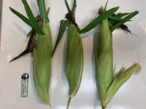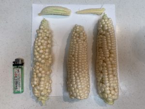 採りたくはなかったのですが、くっついてたので一緒にヤングコーンも収穫してしまいました。 実が白いので 品種は「ピュアホワイト」ですかね?