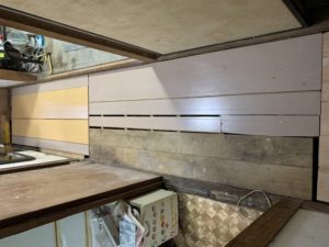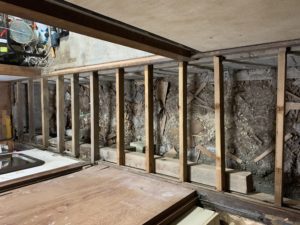 床をはじめなかなかの状態だったのですが、まず床を剥ぎ、土台の作り、骨組みとなる下地を作り直し、二重で床を張り、陥没していたところにモルタルを盛り仕上げました。